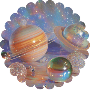 Cupcakes glowing like tiny planets and desserts shaped like moons.